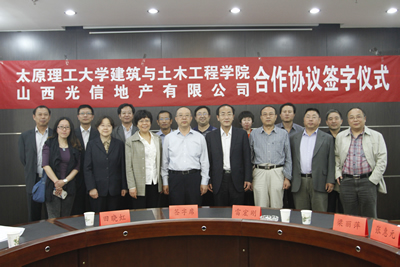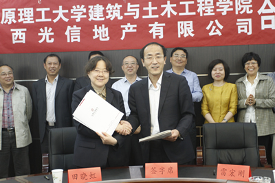 建工学院院长雷宏刚与山西光信地产有限公司副总经理田晓虹分别代表院企双方签订《建工学院与山西光信地产有限公司合作协议》。双方还就建立大学生实习基地、产学研结合等方面的问题进行了深入探讨。