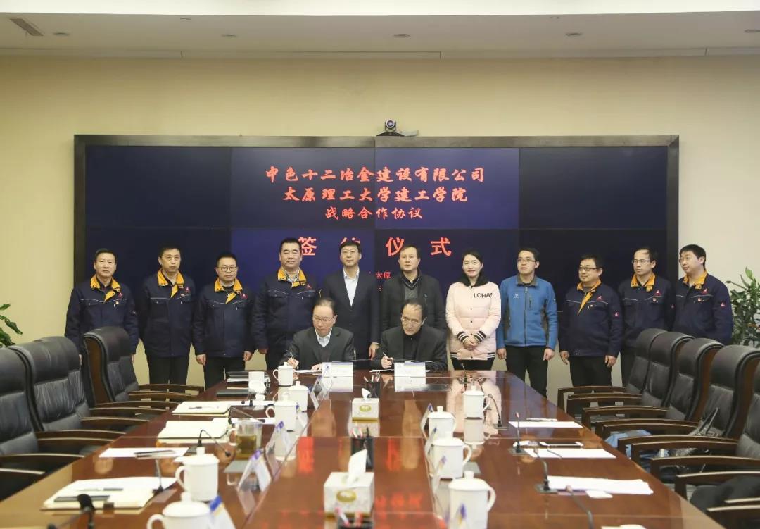 2018年12月18日,我院同中色十二冶金建设有限公司在在十二冶28楼多媒体会议室就产学研合作达成战略合作框架协议。中铝国际副总裁、十二冶党委书记、执行董事刘瑞平,十二冶金建设有限公司副总经理杜继雷,十二冶金金属结构公司党委书记、总经理赵众,副总经理吴洪满、董及刚,工会主席韩鸿志等,以及建工学院院长雷宏刚、副院长董晓强、土木系副主任王蕊、土木实验中心副主任闫亚杰参加了签约仪式。