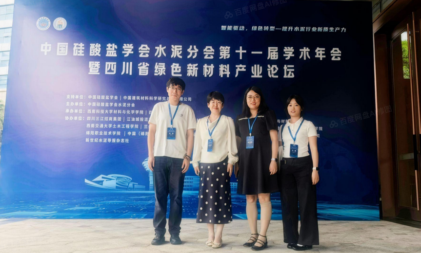 2025年8月18日至20日,中国硅酸盐学会水泥分会第十一届学术年会暨四川省绿色新材料产业论坛在四川省绵阳市圆满召开。此次会议由中国硅酸盐学会水泥分会联合西南科技大学等相关单位主办。应组委会邀请,我院副院长刘元珍教授带领柴丽娟、边钰等教师及研究生赴会,积极参与交流与学习。