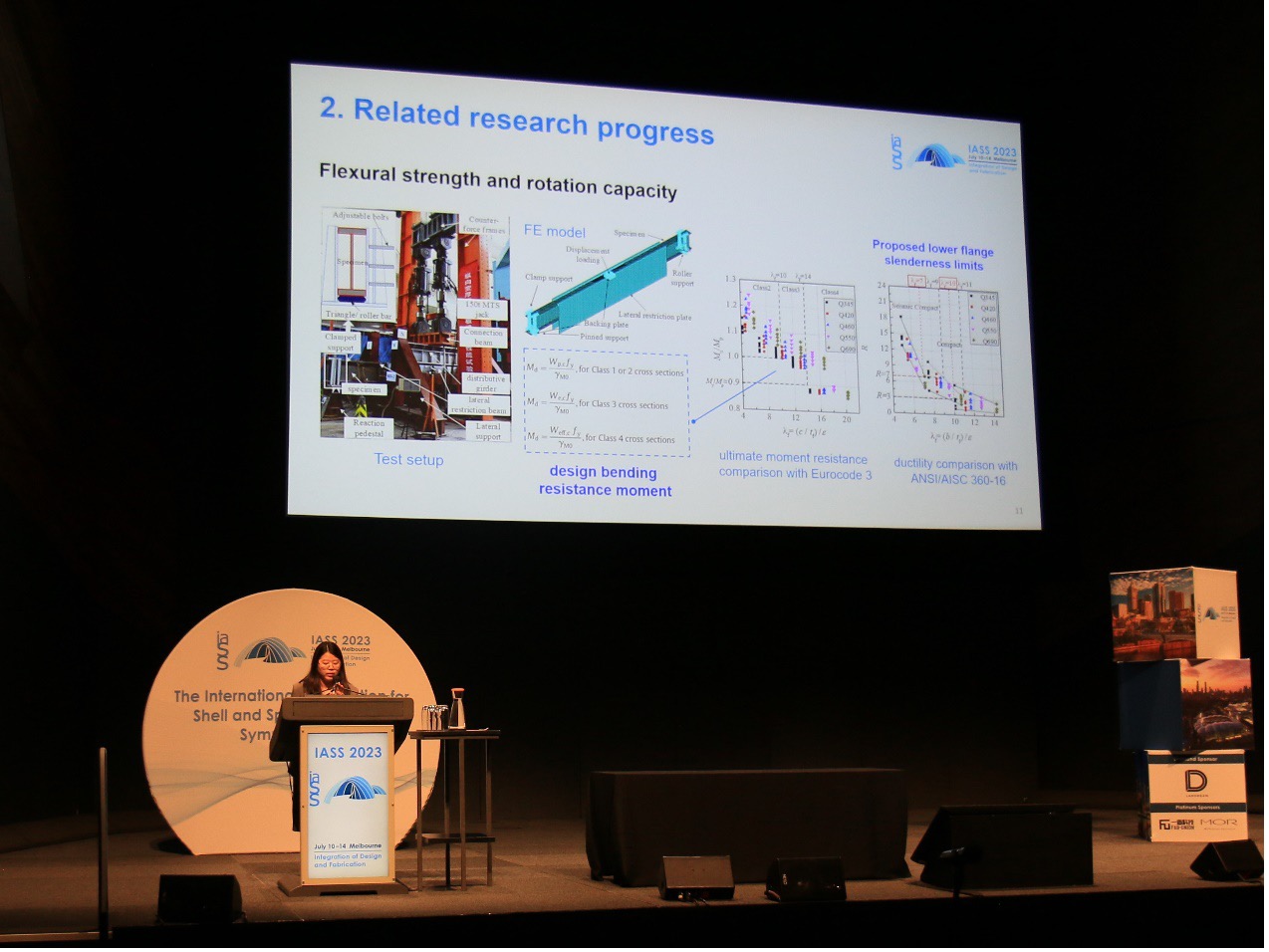 7月10日至14日,我院建工系教师刘晓玲前往澳大利亚墨尔本参加2023国际壳体与空间结构会议,并作题为“Numerical Analysis and Design of Welded I-section Steel Beams with Longitudinally Profiled Flanges under Elastic Overall Buckling”的分会场学术报告。该报告分享了近年来所在研究团队围绕纵向变厚度钢板(LP钢板)这一新型绿色钢板在结构优化设计中亟需解决的关键科学问题研究进展,并与国际同行专家就高性能钢结构领域的热点问题进行讨论。