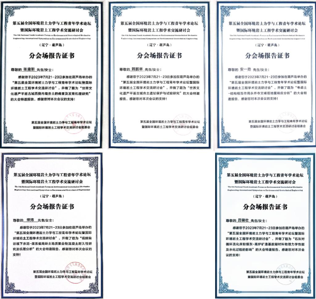 2023年7月22日至23日“第五届全国环境岩土力学与工程青年学术论坛暨国际环境岩土工程学术交流研讨会”在辽宁省葫芦岛市召开,会议由辽宁工程技术大学承办。我院韩鹏举教授一行五人参加了本次会议。