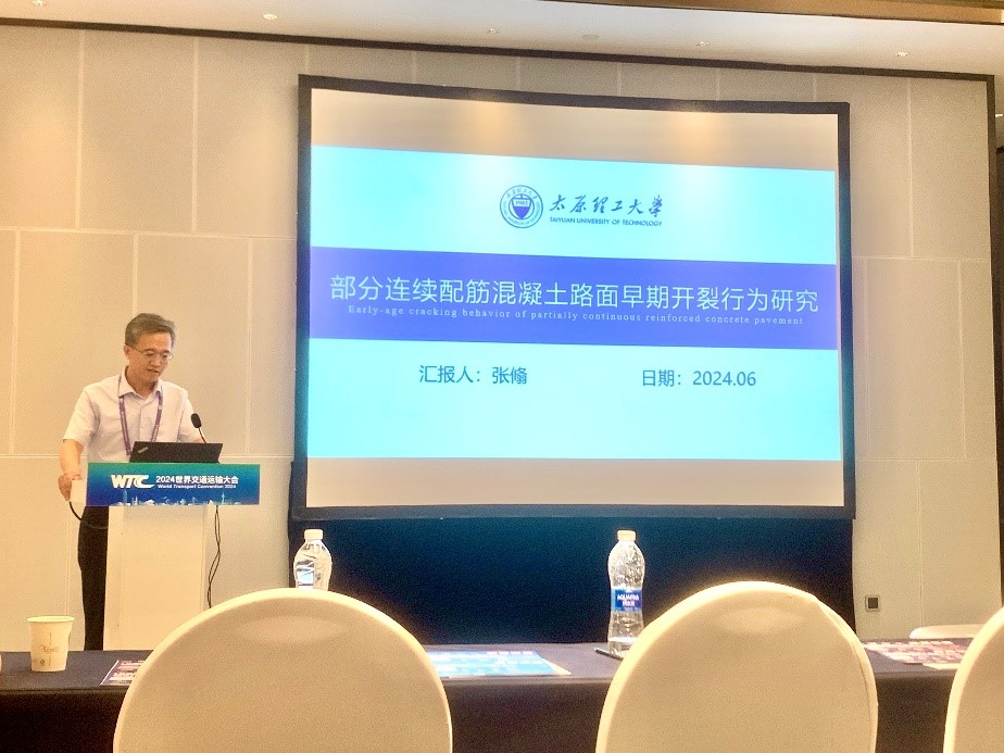 会上,张翛教授以“部分连续配筋混凝土路面早期开裂行为研究”为题作了专题论坛主旨报告。报告基于可持续交通基础设施研究团队对耐久性高等级路面和长寿命路面的最新研究,详细介绍了部分连续配筋混凝土路面早期裂缝的研究进展和实践经验,获得了与会专家学者的广泛关注和一致好评。会议期间,我院师生与相关院校和单位进行了多种形式的广泛交流,取得了丰硕的成果。