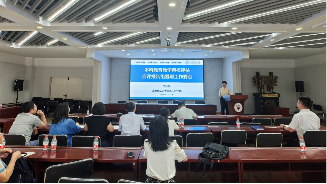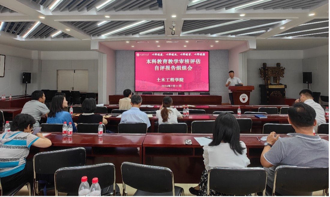 7月11日上午,本科教育教学审核评估自评报告组在五层会议室召开本科教育教学审核评估暑期工作部署会。自评报告组负责人杜震宇副院长、自评报告组组长刘元珍、自评报告组核心成员张兴惠、张翛、王蕊、何斌、邢颖、杨会伟、苗晨曦参加会议。建工系党支部书记程欣,给排水系主任张峰、副主任李亚男和专业负责人受邀参加会议。