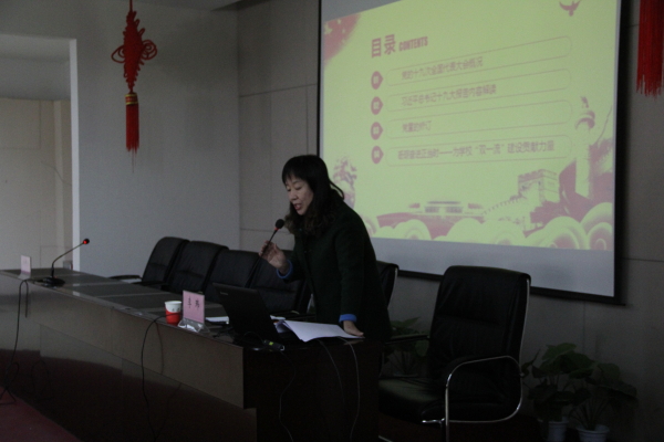 李玮简单介绍了党的十九大概况,详细解读了十八大以来五年的十个方面历史性成就、新时代新思想新矛盾新规划新要求等十九大报告内容,详细说明了党章的修订部分;并号召全体教职工不断提升能力、砥砺奋进,自觉投身“双一流”建设中,为“双一流”建设贡献力量。