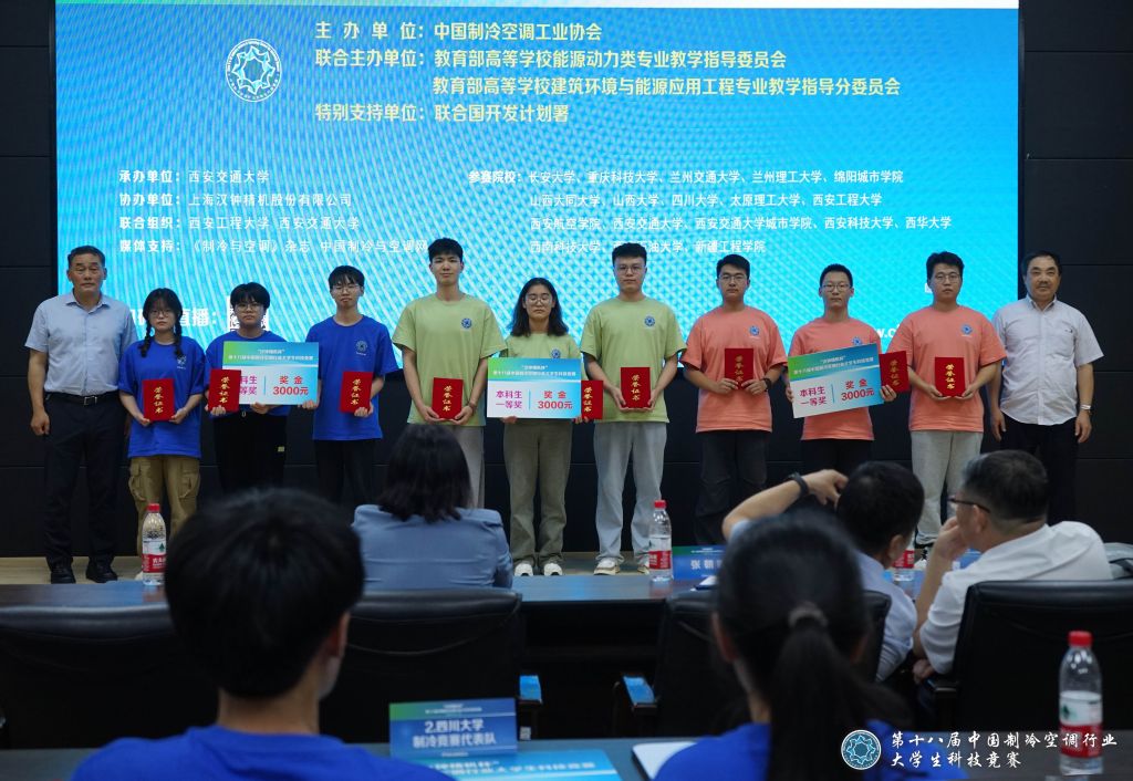7月16日至17日,“汉钟精机杯”第十八届中国制冷空调行业大学生科技竞赛决赛在西安交通大学顺利举行。我院教师张兴惠、贾欣雨指导的由建筑环境与能源应用工程专业2021级本科生王家农、黄家瑞、方宇豪组建的“凭虚御能”队荣获本科生一等奖。