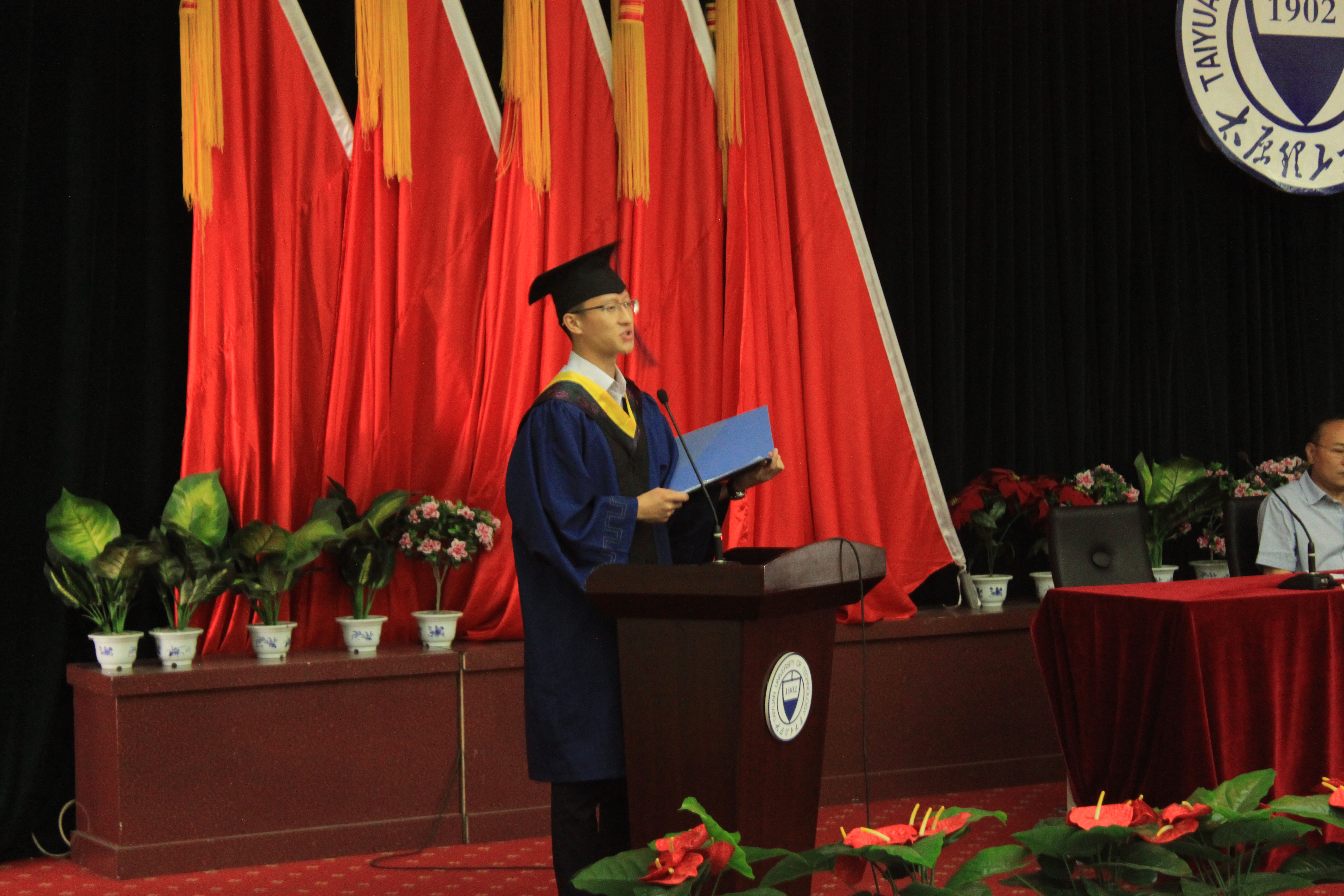 硕士毕业生代表李博发言,他以学习历程为切入点,回顾了大学生活的点点滴滴,祝愿每一位毕业生直面属于自己的时代,担当起建设祖国的责任。