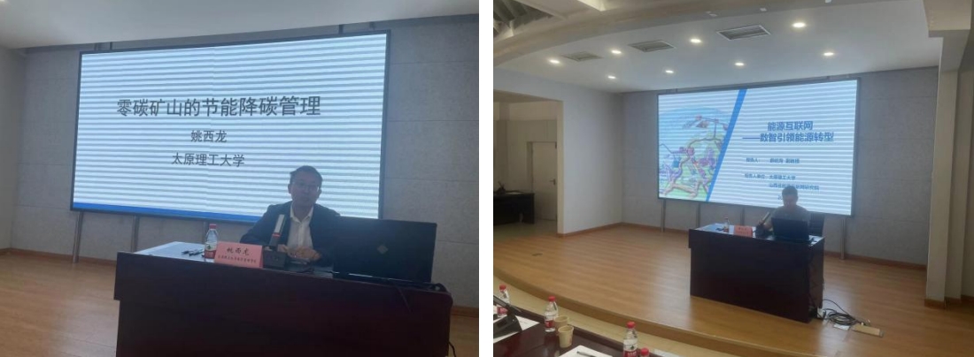 会议对我省最新的科技和能源相关政策进行了宣贯和解读,对工业企业能源审计和能效诊断过程进行了讲解,并对全国首套钠离子煤矿应急电源装备进行了介绍。我校经管学院教授姚西龙、电气与动力学院副教授薛屹洵分别做了题为“零碳矿山的节能降碳管理”和“能源互联网——数智引领能源转型”的学术报告。