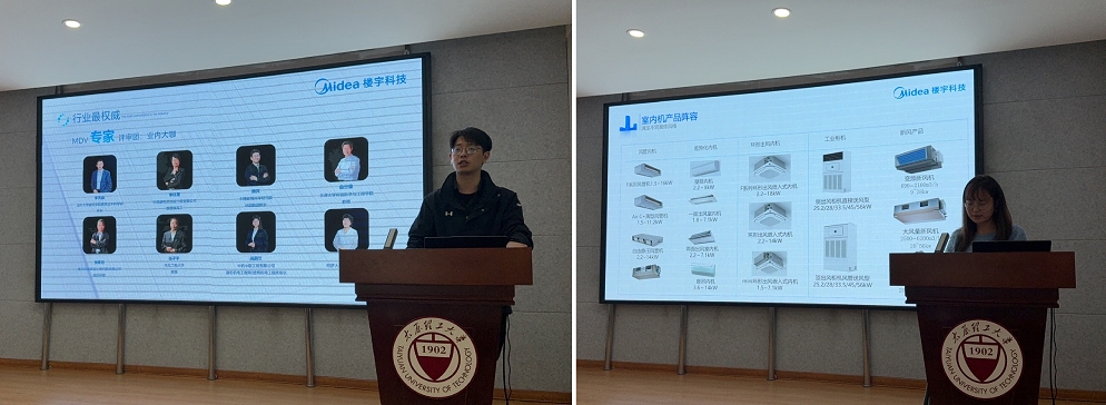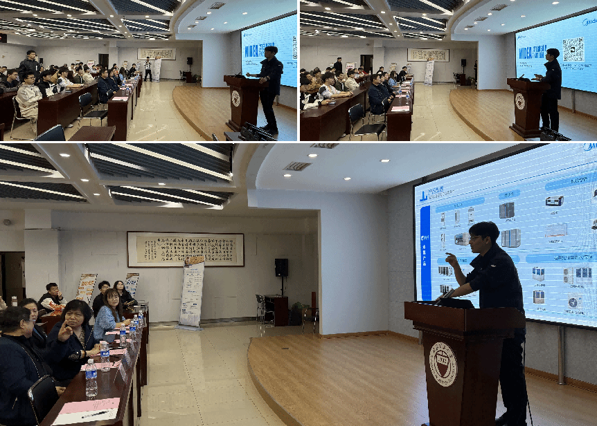 王珑为师生们详细介绍了美的企业的历史沿革以及校企合作的具体内容;重点介绍了第二十三届MDV中央空调设计应用大赛,鼓励学生们以赛促学,通过竞赛提升实践能力和创新能力,同时培养团队协作和问题解决能力;同时宣布了美的楼宇科技在suncitygroup太阳集团设立“SMART IN ONE”奖学金的信息,旨在激励学生们勤奋学习、全面发展,成为行业未来的佼佼者。乔平平则聚焦美的公司在建环方向最新的产品技术特征和学科前沿研究情况,展示了美的在技术创新方面的成果。