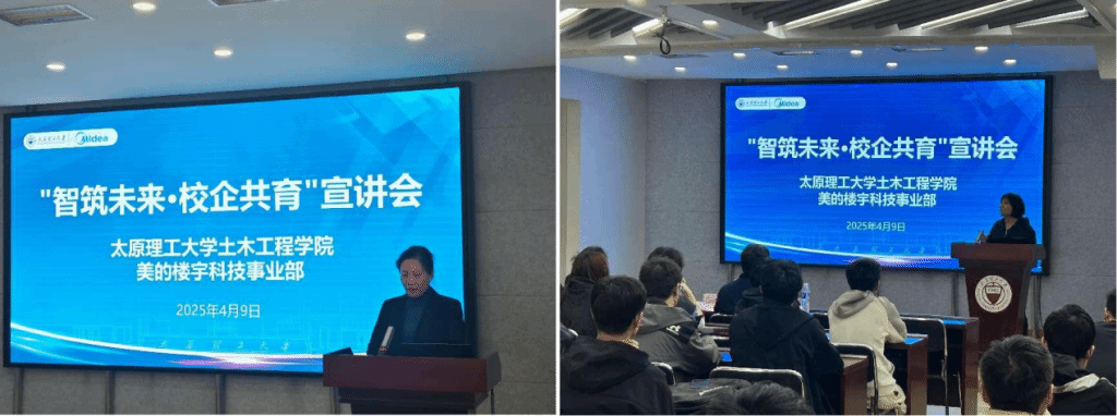 为全面深化校企合作,强化产教融合,为学生搭建起理论与实践结合的桥梁,助力高质量人才培养。4月9日,suncitygroup太阳集团在博学馆A座五层会议室召开“智筑未来·校企共育”宣讲会,主讲嘉宾为美的楼宇科技事业部山西中心市场经理王珑、山西中心售前技术支持工程师乔平平,suncitygroup太阳集团党委副书记芦倩、建筑环境与能源应用工程专业系主任张兴惠以及建环系教授田琦出席本次会议,建环专业本研学生代表到场聆听学习。讲座由suncitygroup太阳集团就业专员张维庆主持。