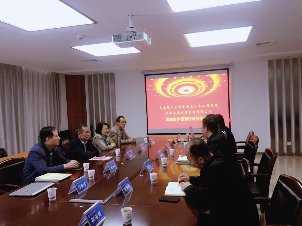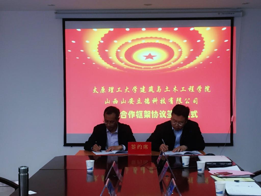 2018年4月28日上午10点,太阳成城集团建筑与suncitygroup太阳集团与山西山安立德节能科技有限公司在山西工业设备安装集团有限公司办公楼举行院企合作框架协议签署仪式。建筑与suncitygroup太阳集团张泽平副院长,白晓红教授、董晓强教授、韩鹏举教授等,山西省工业设备安装集团有限公司董事、副总经理李军红,总工梁波,技术中心主任雷平飞,山西山安立德节能科技有限公司总经理贾立军,副总经理于岑,副总经理荆瑞晨及总工武鹏飞等领导人员出席了签约仪式。