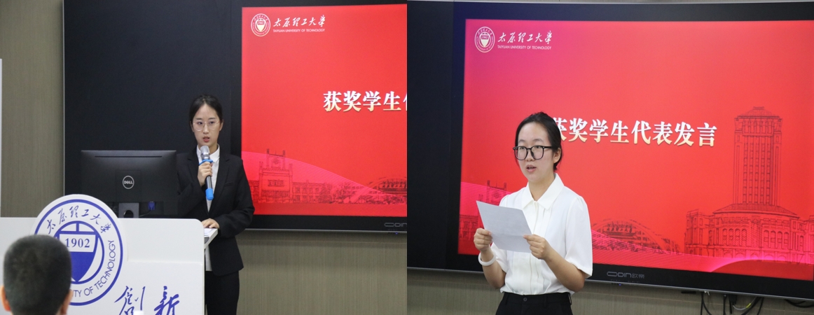 与会领导及嘉宾为获奖助同学颁发荣誉证书,获奖本科生代表孟若冉和获奖研究生代表乔雪娇同学分别发表感言。