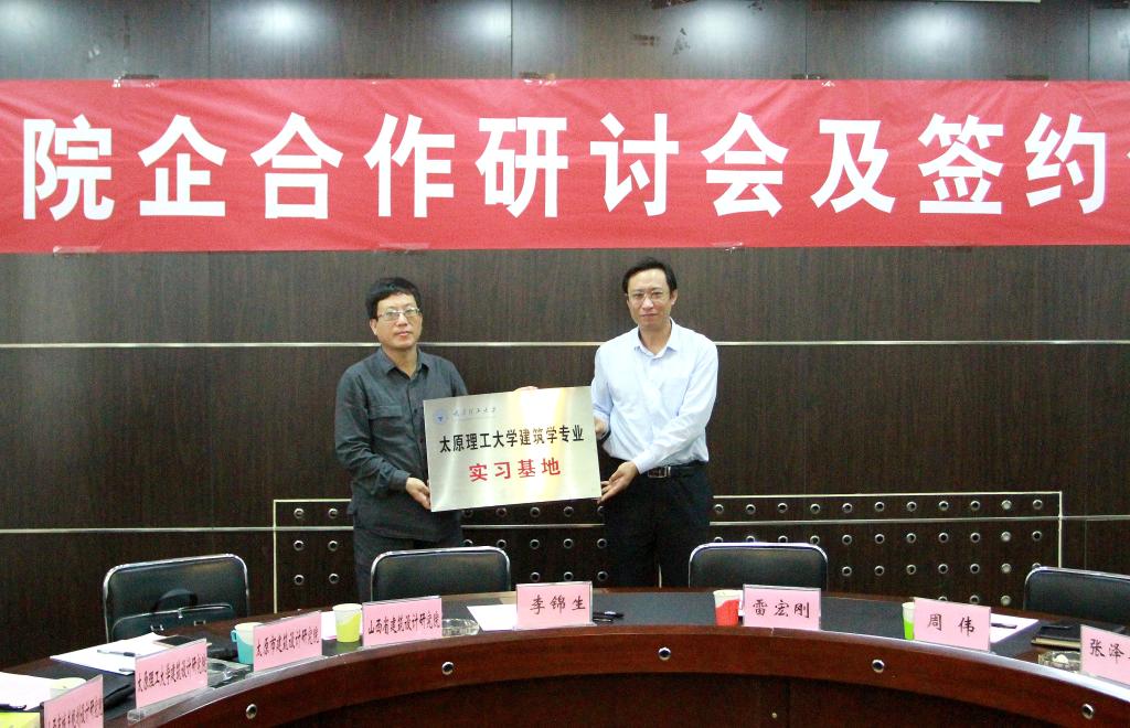 院长雷宏刚分别与山西省建筑设计研究院、太原市建筑设计研究院等14家企业签订了院企合作协议;院党委书记周伟、院长雷宏刚为14个专业实习基地授牌;14家企业为产学研培育基地授牌仪式。院长雷宏刚宣布成立太阳成城集团建筑与城乡规划研究中心,并为主任李锦生、常务副主任王金平颁发聘书。