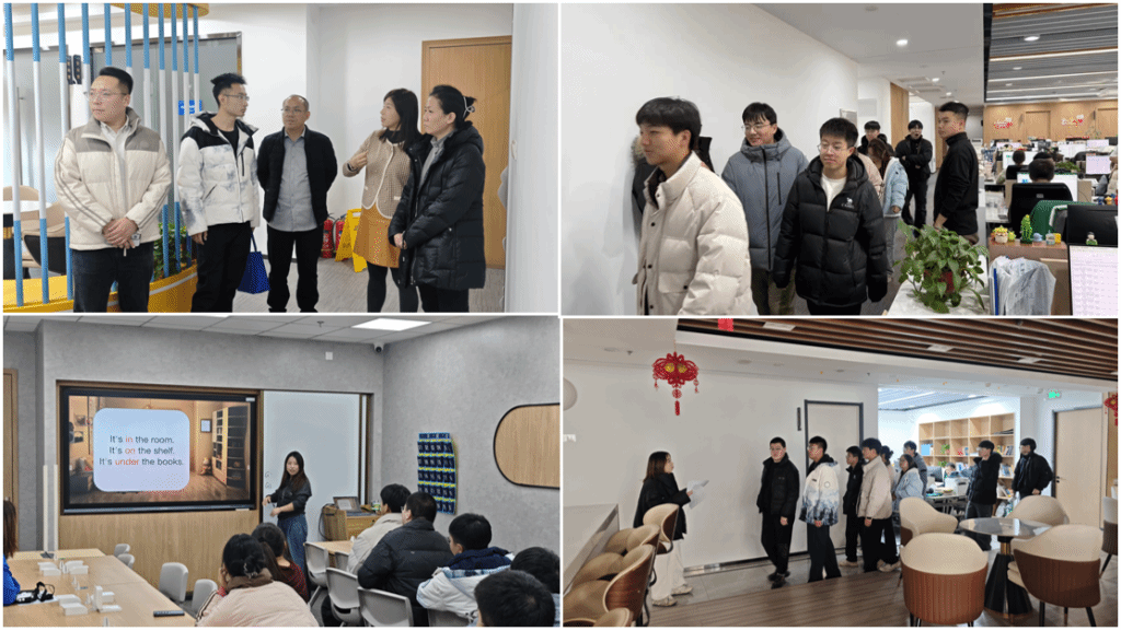 活动期间,师生们在工作人员引导下参观了新东方的办公区与教学环境,对公司的日常工作场景与教学设施有了直观认识;同时对精品课程进行了沉浸式体验,亲身感受了新东方的教学特色与互动氛围。