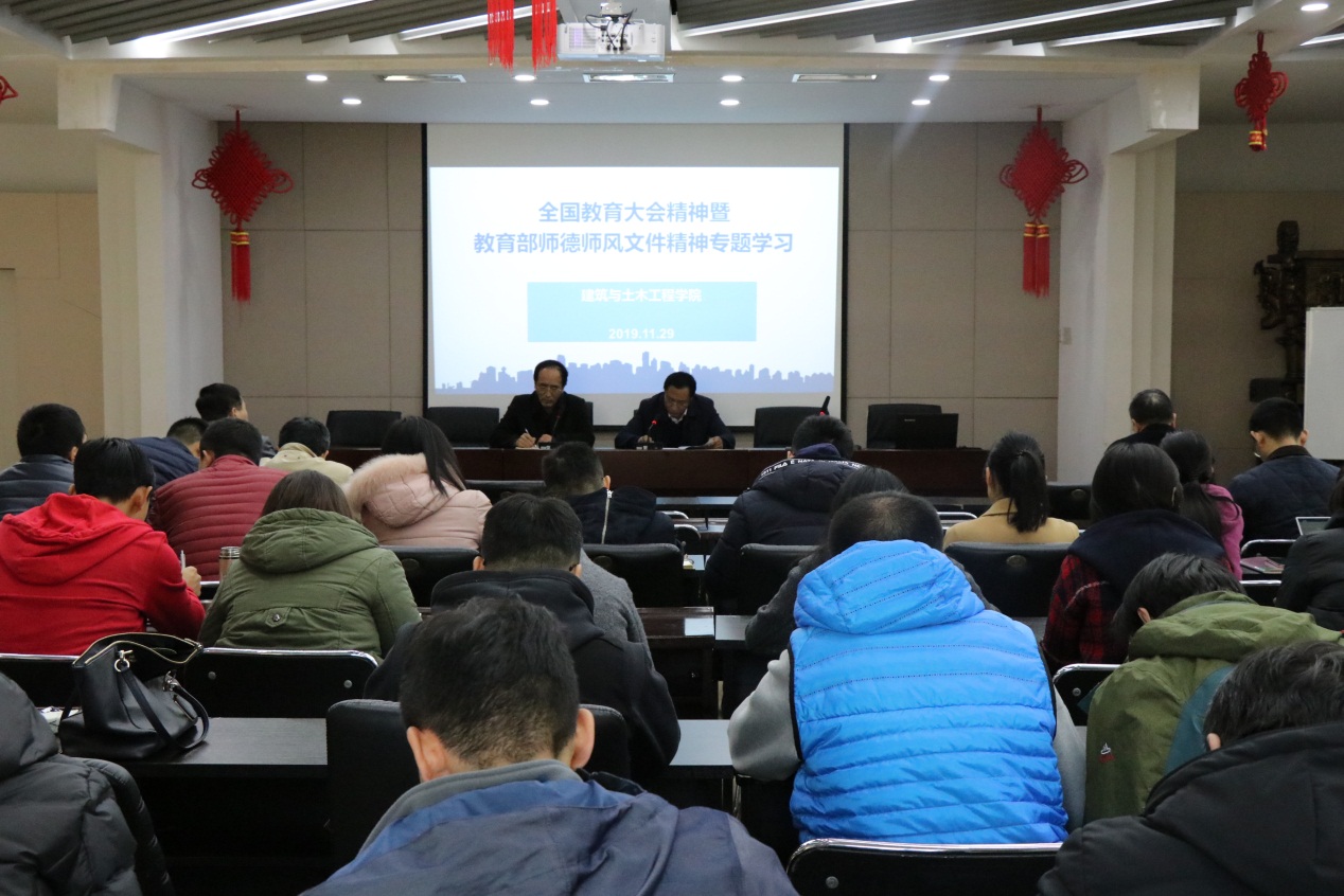 为深入贯彻落实全国教育大会精神,扎实推进我院师德师风建设,11月29日上午,建工学院在学院五层会议室召开全国教育大会暨教育部师德师风文件精神专题学习会。