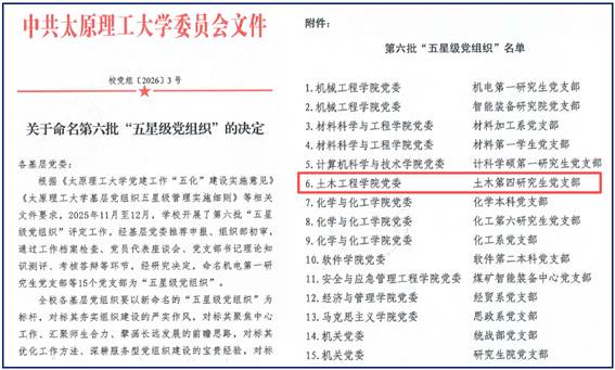 前路虽远,行则将至;行而不辍,未来可期。站在获评“五星级党组织”的全新发展起点,土木第四研究生党支部将始终以习近平新时代中国特色社会主义思想为根本指引,持续强化政治引领、夯实组织基础,进一步凝聚支部全体党员的青春智慧与奋进力量,不断筑牢基层党组织战斗堡垒,以更高标准、更实举措推动党建工作与人才培养、科研创新深度融合,为学校“双一流” 建设贡献更多支部力量!