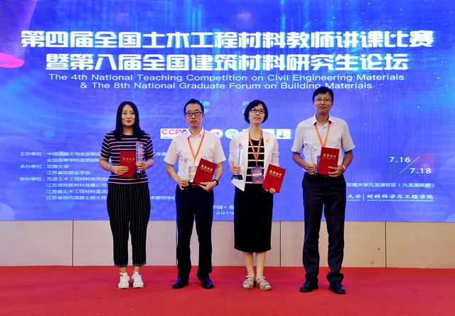 第四届全国土木工程材料教师讲课比赛暨第八届全国建筑材料研究生论坛于2019年7月16日至18日在江苏省南京市东南大学九龙湖校区隆重举行。本次比赛及论坛活动由中国混凝土与水泥制品协会教育与人力资源工作委员会、全国高等学校建筑材料学科研究会联合主办;东南大学、江苏省硅酸盐学会承办;先进土木工程材料协同创新中心、江苏苏博特新材料有限公司、江苏省土木工程材料重点实验室、江苏省现代混凝土耐久性评估与提升工程技术研究中心协办。日程中安排有教师讲课比赛、研究生论坛、院士论坛、理事会、教学研讨会、研究生论坛学术报告等活动。