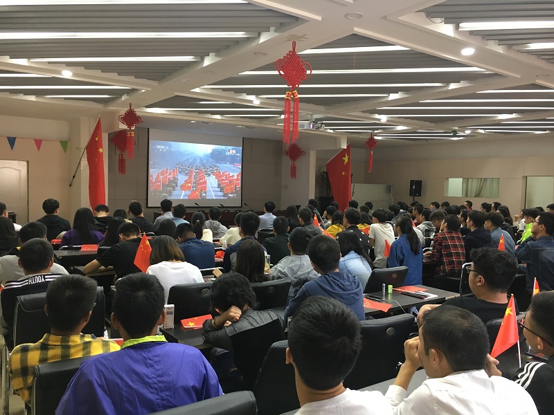 10月1日,庆祝中华人民共和国成立70周年大会在北京天安门广场隆重举行。为进一步激发广大师生的爱国热情,我院组织百余名在校师生集中收看了大会盛况。学院党委书记周伟、副院长董晓强及学工办、团委负责人等与师生一道观看了直播盛况。