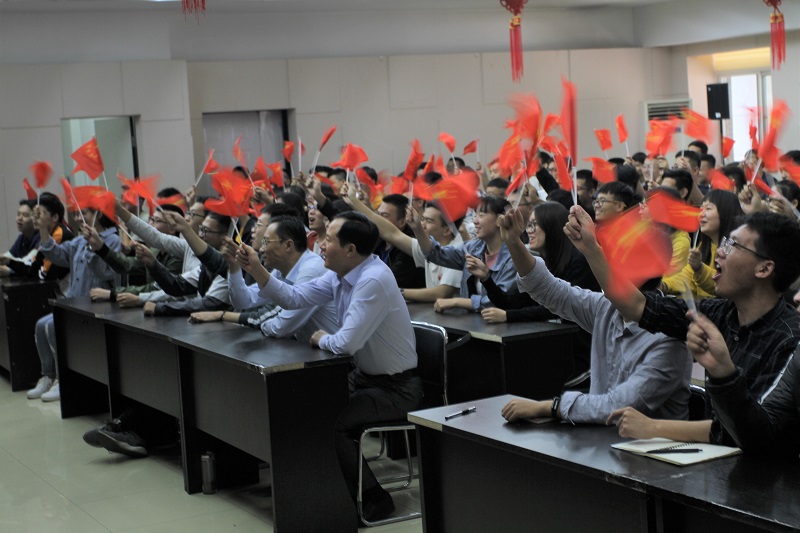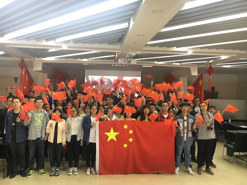 10时,庆祝大会正式开始,56门礼炮、70响轰鸣,瞬间点燃了广大师生的爱国激情,全场齐声高唱国歌,伴随着鲜艳的五星红旗在天安门广场冉冉升起,现场的很多老师和同学不禁热泪盈眶。升国旗仪式后,习近平总书记发表重要讲话,回顾了新中国70年来的发展壮大历程,展望了伟大祖国明天的宏伟蓝图,习近平总书记铿锵有力的话语,赢得了现场师生发自内心的阵阵掌声。