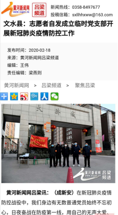 接受采访时他腼腆地说:“被推选为临时党支部书记时,我心里非常忐忑,怕自己工作做得不够好,因为和其他同志相比,他们更有资历和经验,遇到事情更有办法。然而,是其他同志的鼓励让我对带领大家做好防疫工作有了更强的信心,他们鼓励我要发挥当代年轻人的优秀品质,保持积极的进取精神,在工作中磨炼自己,在责任中得到成长。”张帅同学的事迹已于2月18日被黄河新闻网报道(如下图,可点击查看)。