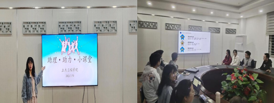 最后,土木1801班的赵蔚同学为大家倾情分享了他为期两年半的学生助理经验。赵蔚提到,在协助老师过程中,老师身上的优良品质潜移默化地影响了他。同时,他指出认真学习的重要性,希望我们的助理要努力做到学习工作两不误。