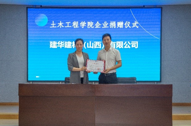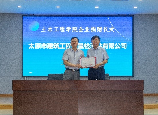 会上,董晓强与太原市建筑工程质量检测站有限公司和太原普可佳工程设计有限公司的签署了捐赠协议,并接受了总价值20万元办公设施的实物捐赠。芦倩与建华建材(山西)有限公司签署了捐赠协议,并接受了对“太阳成城集团混凝土材料设计大赛”全部比赛材料的实物捐赠。