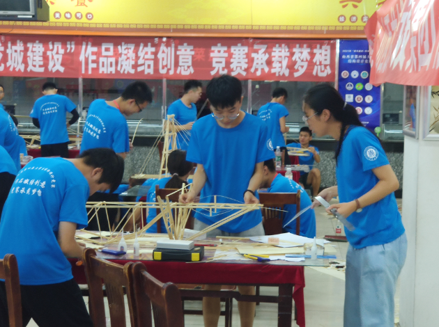 本届竞赛由山西省土木建筑学会主办,中北大学、山西省大学生土木工程学科竞赛委员会、山西省岩土与地下空间工程专业委员会承办,旨在提高大学生创新设计能力、动手实践能力和综合素质,加强高校间的交流与合作。本届竞赛共有包括山西大学、中北大学、吕梁学院、山西能源学院以及我校在内的13所高校,共37支队伍参赛。竞赛以“变参数桥梁结构模型设计与制作”为赛题,模型采用集成竹材料制作,并在加载现场施加静荷载和动荷载测试结构模型的挠度和承载能力。评委对各参赛队在设计计算、结构选型与制作质量、现场表现、模型承载力、模型刚度等环节中的表现分别评分,最后由组委会来综合评定各队总得分。
