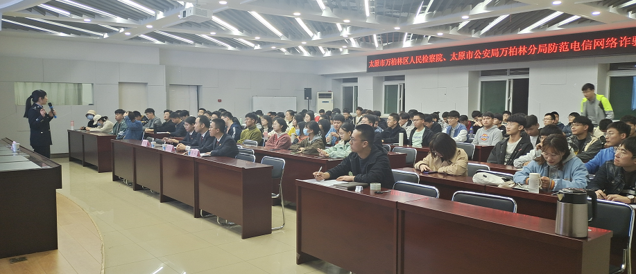 为深入贯彻落实习近平总书记对打击治理电信网络诈骗犯罪工作重要指示,切实增强学生安全意识,提高安全防范能力,10月25日晚,我院在博学馆A座五层会议室举办防范电信网络诈骗安全讲座。太原市公安局十佳反诈讲师,万柏林分局长风派出所综合中队副中队长李婉彤警官受邀担任主讲嘉宾,太原市万柏林区人民检察院第二检察部主任王志军、检察官助理甄越、李蔚,以及学院90余名本研学生参加了此次讲座。