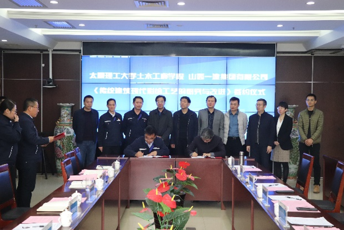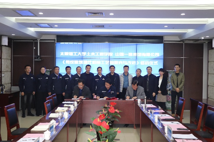 与会人员围绕合作进行了深入细致的交流。之后,董晓强代表学院与山西一建集团签订了院企合作框架协议,李铁英教授与一建集团签署了一项科研项目。