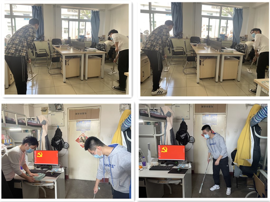 当前全国疫情形势严峻,校园封闭管理期间,为进一步阻绝疫情潜在传播风险,引导我校学生养成良好的生活习惯,强化疫情防控意识,落实疫情防控要求。同时,增强宿舍成员间的凝聚力、向心力,展现我校学生的综合素质,以实际行动迎接我校120周年校庆。我院积极响应学校号召,开展“防疫有我 爱卫同行”光亮行动,组织学生对学院各实验室、宿舍和工作公共区域进行全面、有效的清洁工作。