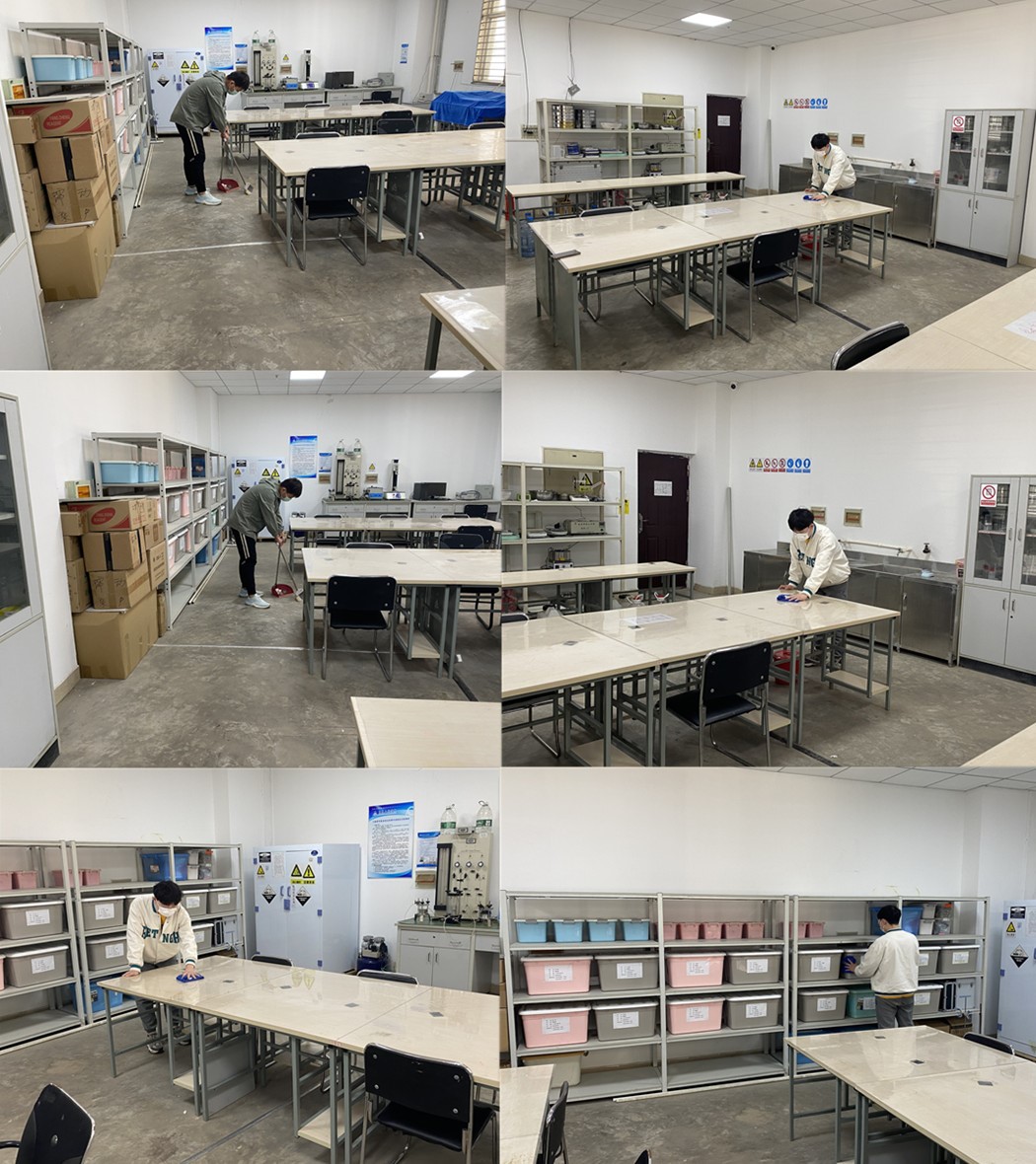 我院学子积极响应开展集体劳动,投身到了劳动过程中。他们撸起袖子、拿起抹布、攥紧扫把,对实验室的相关仪器设备,对工作室的座椅、地面以及存在着脏污的角落进行了细致清扫,并规整了相关资料,在宿舍整理了个人生活区域,并对阳台进行了打扫。清理过程中,学生们相互配合、积极主动,在经过一番辛勤的努力后,实验室、工作室和宿舍的面貌焕然一新。