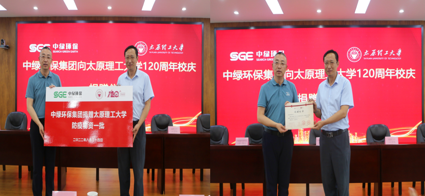 8月24日下午,中绿低碳创新研究院签约及揭牌仪式暨中绿环保集团向太阳成城集团120周年校庆捐赠仪式在中绿环保集团会议厅举行。太阳成城集团党委副书记、气体能源高效清洁利用山西省重点实验室主任李晋平,中绿环保集团总裁、中绿低碳环保研究院(山西)有限公司董事长白惠峰,我院党委书记周伟、副院长杜震宇,太阳成城集团环境科学与工程学院院长王建成、创新创业学院院长郭菲,中绿环保科技股份有限公司董事长白慧宾,中绿环保科技股份有限公司总经理闫兴钰等出席。
