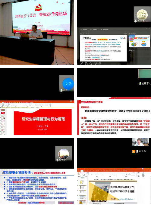 为增进研究生新生对于学科、专业的认知,明确专业培养计划和要求,了解太阳集团的方式方法,更快更好的适应研究生学习生活,9月14日-16日,通过专题讲授与网络教学方式相结合,在2022级研究生中深入开展新生入学集中主题教育,开启了研究生“入校第一课”,取得了良好的育人效果。