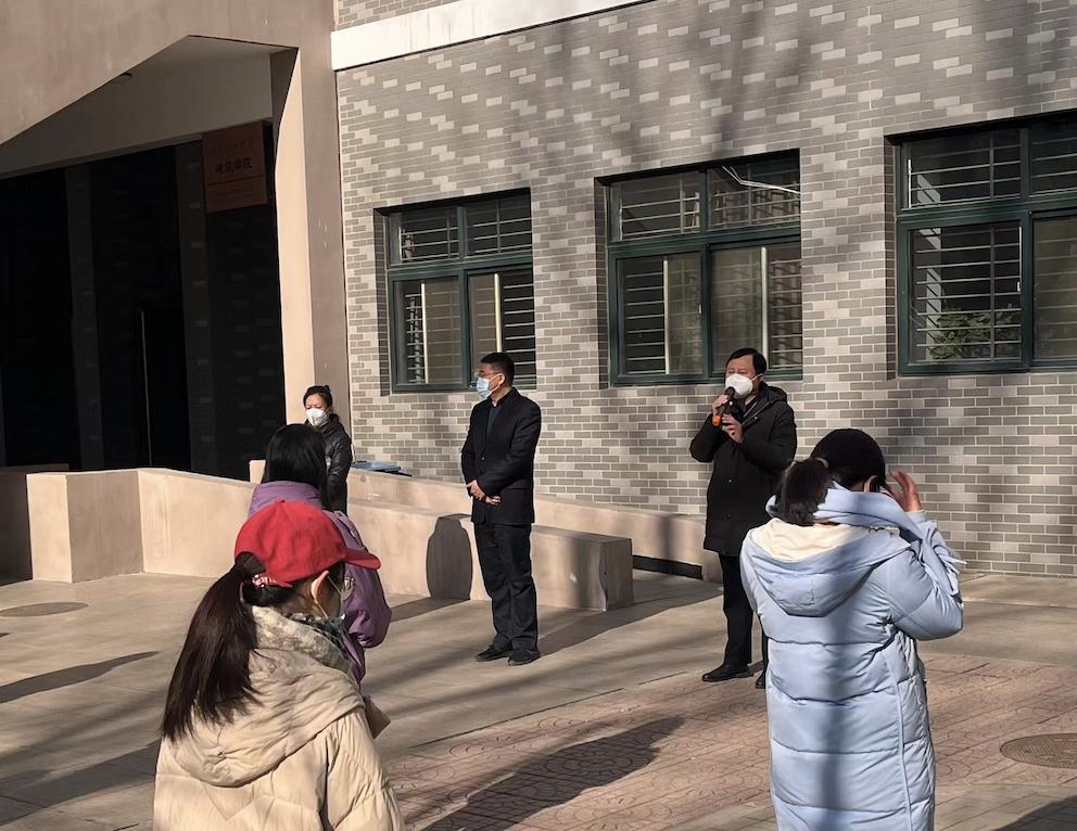战疫不松懈,齐心筑防线。12月15日上午,我院在博学馆A座楼前现场召开在校生疫情防控会,院党委书记武佐君,院长董晓强,党委副书记芦倩出席,在校本研学生参加。会议由芦倩主持。