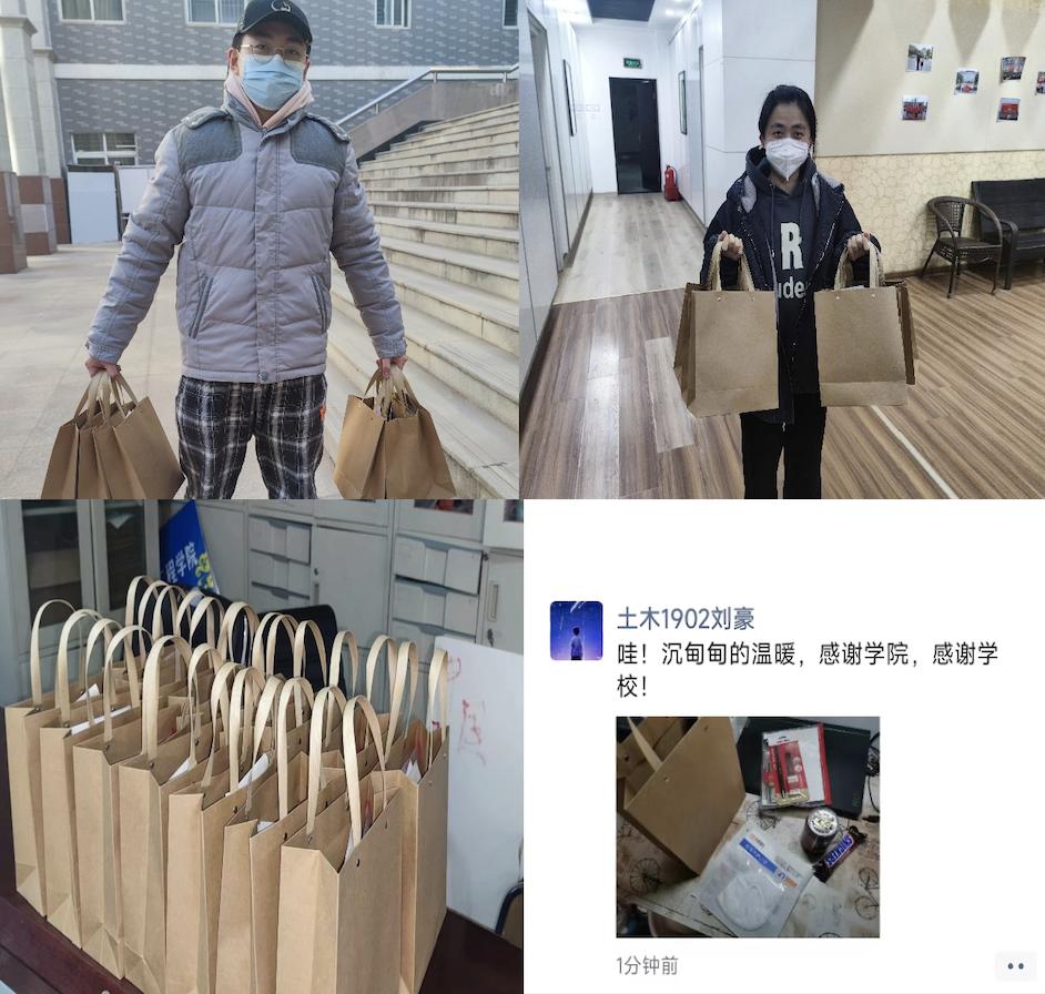随后,学生代表分时段、分批次领取了考研大礼包,无接触地在各班进行了发放。同学们收到礼包后,深感温暖,备受鼓舞,纷纷表示,将拿出最好的状态冲刺考研,以优异的成绩回报学院,不负老师和同学们的殷切期望。