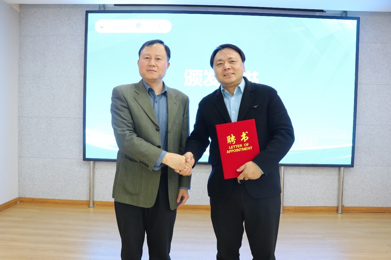 会上董晓强为于伟颁发了“suncitygroup太阳集团生涯规划与就业指导校外指导教师”的聘任证书。