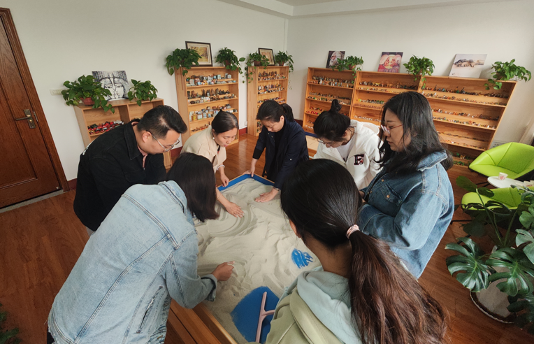 一沙一世界,一盘一乾坤。为加强辅导员队伍心理健康教育水平,不断提升辅导员职业能力与心理素养,调适心境和舒缓工作压力,我院于4月20日上午在学校学生心理健康指导中心开展主题为“探索自我,为心赋能”团体沙盘体验活动,学院党委副书记芦倩以及全体辅导员参加。此次活动邀请了学校学生心理健康指导中心芦朝霞老师带领辅导员老师们进行团体沙盘游戏。