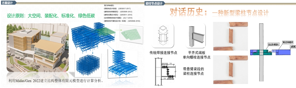 本次竞赛主题为“图书馆”,要求设计成果体现钢结构建筑特色;利用钢结构自重轻、强度高、抗震性能好、施工周期短等优点同国家现行标准规范要求结合;突出大跨度大空间、易转化、易分割的特点;并满足标准化、装配化、高效节能、绿色低碳等新型建筑形态。