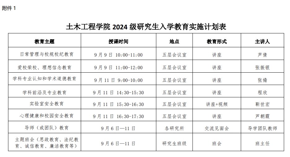 根据学校2024级研究生迎新和培养安排,结合我院实际情况,现将2024级研究生新生入学教育安排如下:(见附件1)