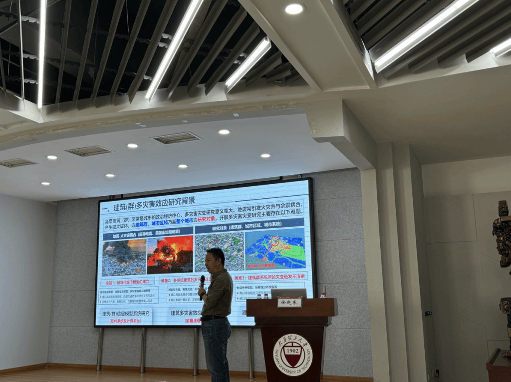报告结束后,董晓强代表学院对徐赵东教授的精彩报告表示了感谢。他指出,党的二十大报告将提高“防灾减灾救灾”能力纳入公共安全治理范畴,明确坚持“安全第一、预防为主”的基本方针。徐赵东教授团队科学预测多种灾害对城市造成的影响,研究成果对有效配置防灾资源、提升城市综合防灾水平具有重要意义。董晓强勉励在座师生秉承创新使命、求真务实,为助力土木工程防灾减灾高质量发展贡献力量。