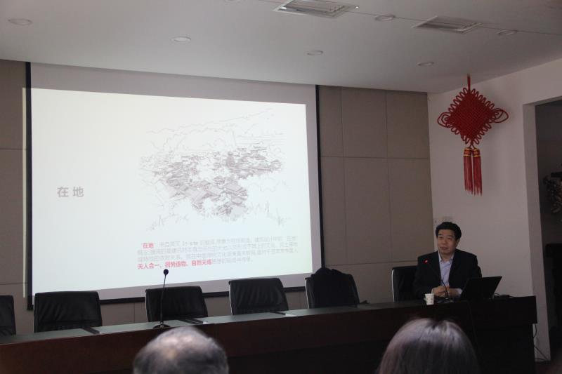 王教授从自然维度、建构维度、人文维度、生态维度、时间维度等五个维度介绍了建筑设计中“在地”的内涵,并结合深圳隐秀山居酒店、江西恒茂御泉谷国际度假山庄、丽江金茂旅游度假村、无锡太湖新城贡湖湾悦榕庄酒店、无锡龙头渚景区度假区、鹰潭师范附小等多个实践项目实例,阐述了“在地”设计中对中国传统文化“天人合一、因势造物、自然天成”的设计思想传承与延续。整个报告深入浅出,图文并茂,与会师生表现出浓厚兴趣。