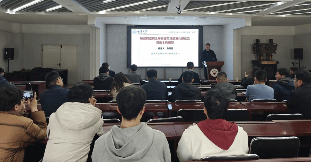报告结束后,两位专家与我院师生围绕钢结构全生命周期内的疲劳性能演化、沥青路面材料的再生循环利用以及国际项目申报策略进行了热烈且深入的交流。师生们积极提问,讨论气氛十分活跃。与会师生普遍认为,报告内容既精彩又富有深度,不仅给大家的科研工作提供了新的思路和方法,同时有效激发了全院师生树立专业自信、强化学术抱负的内生动力。