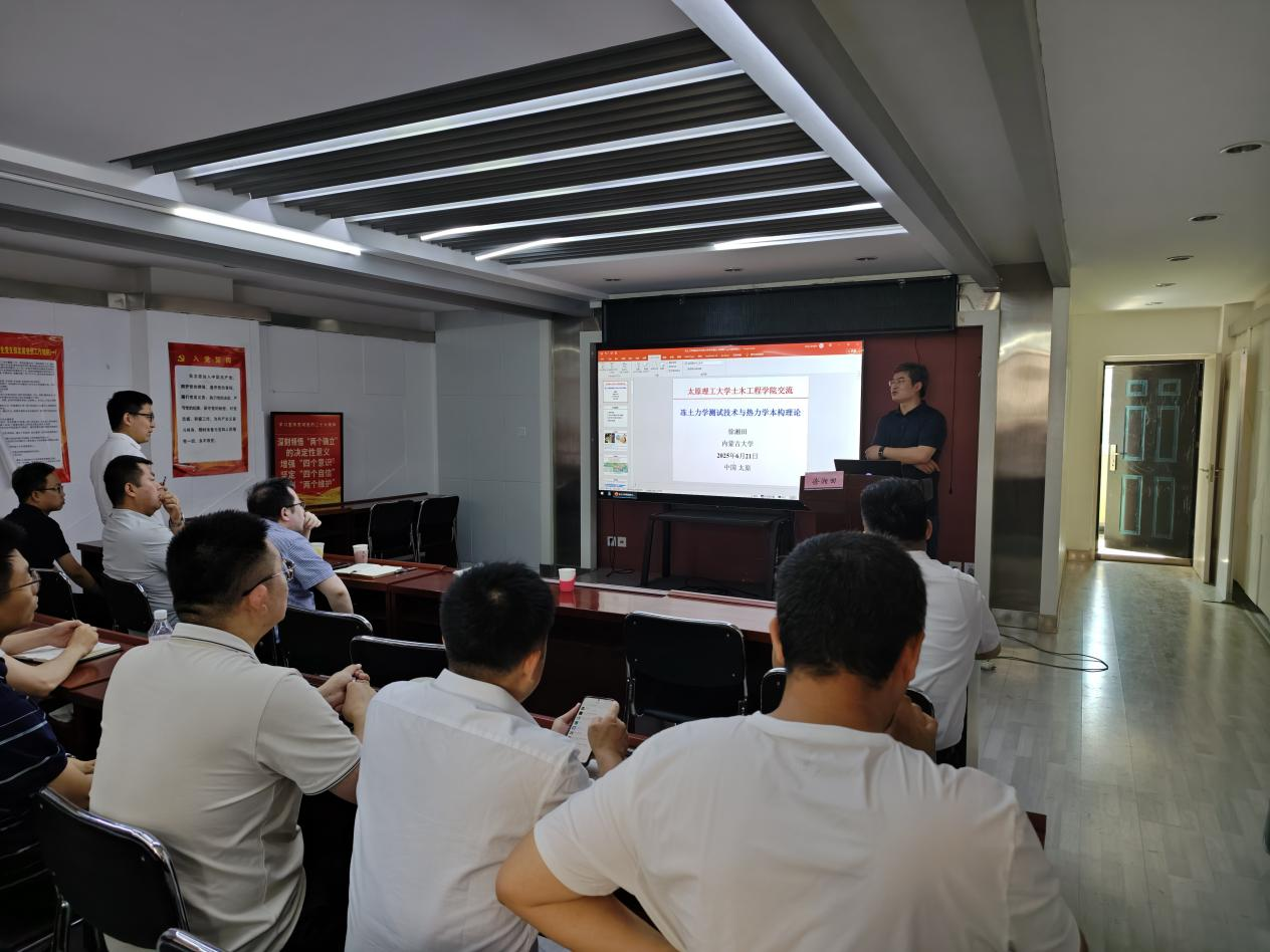 2025年6月21日下午,内蒙古大学徐湘田教授应suncitygroup太阳集团邀请,在博学馆A座5层岩土会议室进行了学术报告,我院岩土工程专业师生到场聆听,报告会由苗晨曦主任主持。