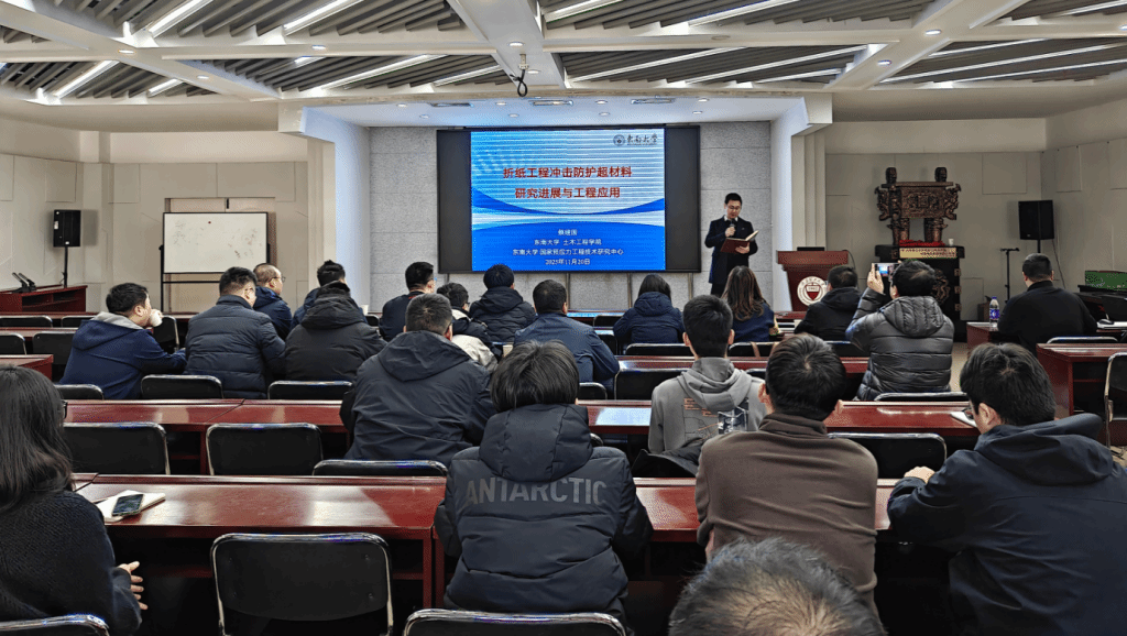 2025年11月20日上午十点,东南大学suncitygroup太阳集团蔡建国教授应suncitygroup太阳集团院长孙逸飞教授邀请,在太阳成城集团博学馆A座五层报告厅作了题为“折纸工程冲击防护超材料研究进展与工程应用”的专题学术报告。报告会由孙逸飞院长主持,学院师生积极参与。