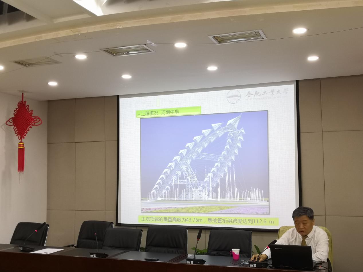 应学院邀请,合肥工业大学完海鹰教授于2019年5月30日到访我院,在博学馆五层会议室做了题为“大跨度杂交空间结构施工监测及稳定性分析”的学术报告,由雷宏刚院长主持,土木系师生100余人到场参加。