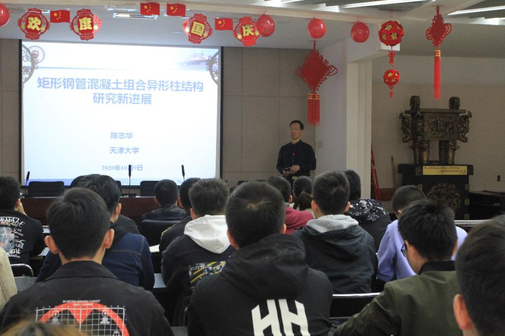 2020年10月9日,陈志华教授应邀在学院五层会议室做了主题为“矩形钢管混凝土组合异形柱结构研究新进展”的学术报告,报告由董晓强副院长主持,学院100余名师生聆听了此次报告。