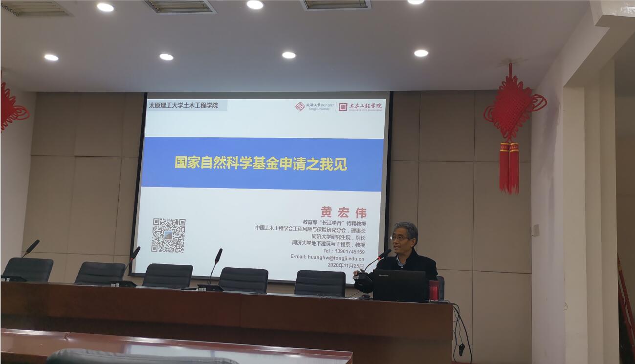 2020年11月25日下午,同济大学黄宏伟教授应邀至我院进行“国家自然科学基金申请之我见”的专题讲座。学院师生积极参加,学术讲座由副院长董晓强教授主持。