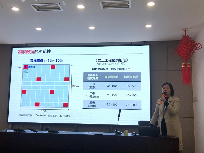 张璐璐教授围绕“土体空间变异性”开展报告,主要介绍了在土体空间变异性表征方面的研究工作,具体包括勘察数据融合和监测数据的参数概率反分析的两部分内容。通过协克里金空间插值方法,实现了非同位的多源勘察数据融合。基于现场监测数据,建立了土体参数空间变异性的概率反分析方法,实现了监测响应数据对空间变异性的表征。