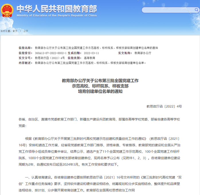 近日,教育部公布了第三批新时代高校党建示范创建和质量创优工作培育创建单位名单。我院土木第三研究生党支部入选“全国党建工作样板支部”培育创建单位。