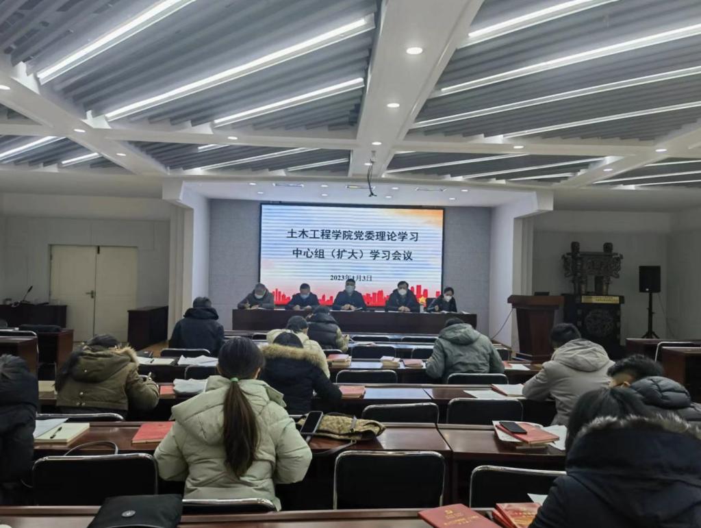 1月3日上午,我院2023年第一次党委理论学习中心组(扩大)学习会召开。院领导班子、系部中心主任、三办一委负责人、工会主席、党支部书记参加,院党委书记武佐君主持会议并讲话。