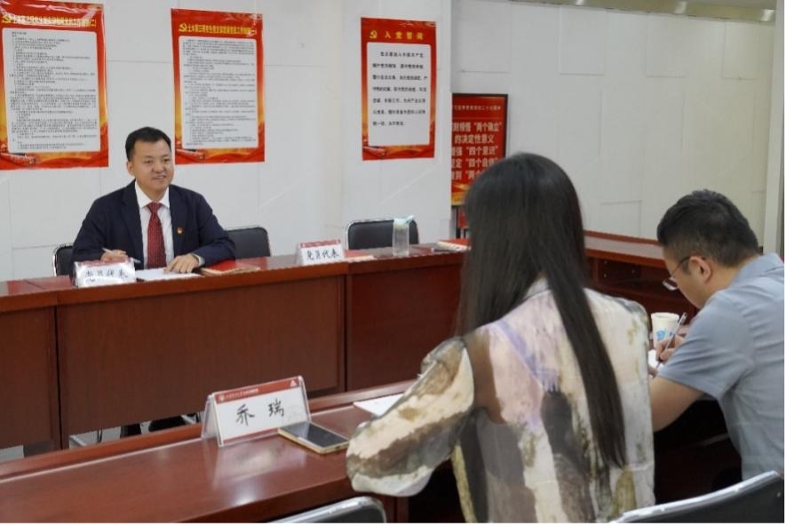 在观看宣传视频后,何斌汇报本支部创建情况。介绍了支部以党建引领,科研创新为核心,服务师生为宗旨,不断增强研究生的科研能力和人文素养的独特工作模式,并重点突出凝聚支部多年党建经验的“5321”工作举措。土木第三研究生党支部充分发挥了研究生党建对高质量研究生培养的引领作用,注重将研究生党建与思想政治工作、太阳集团工作紧密融合,并取得了丰硕的研究生党建成果,得到了调研验收工作组的一致肯定。